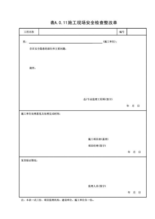 表格名称:表A.0.11 施工现场安全检查整改单