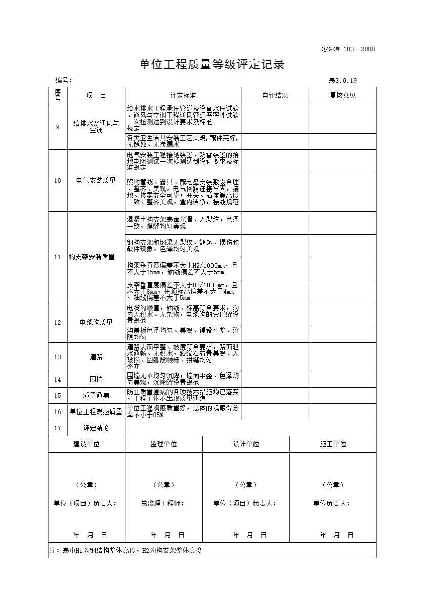 表格名称:3.0.19___________单位工程质量等级评定记录表