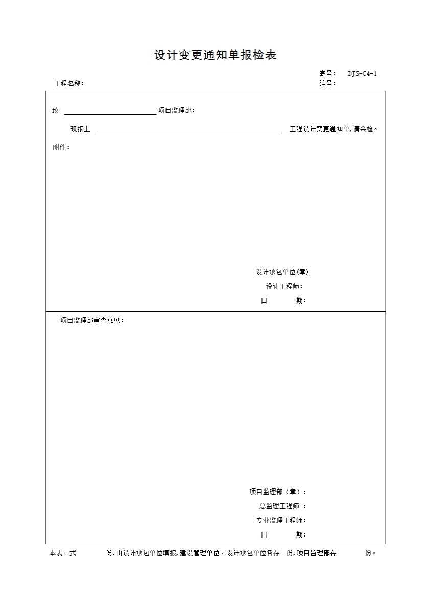 表格名称:DJS-C4-1 设计变更通知单报检表