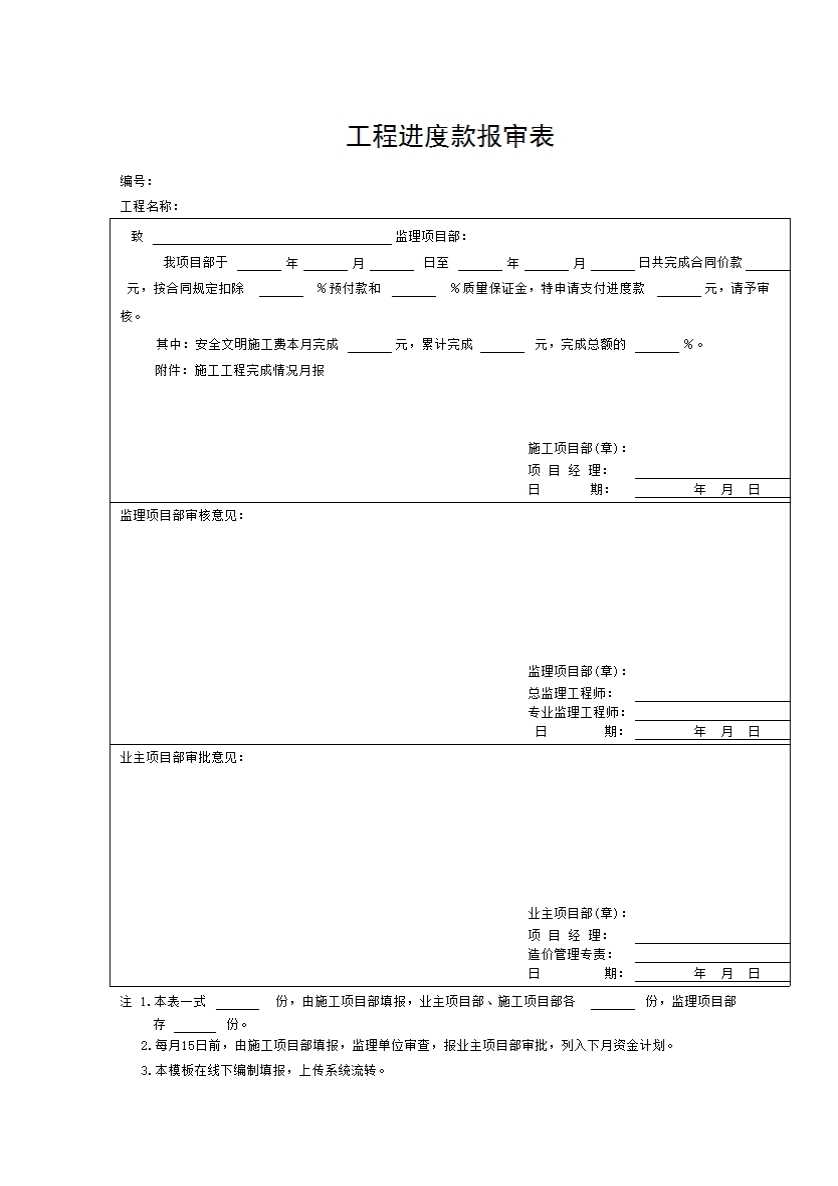 表格名称:YZJ1:工程款报审表