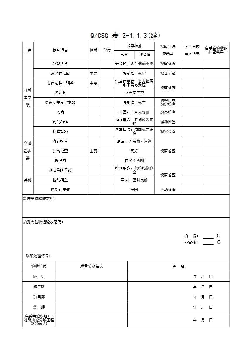 QCSG 表 2-1.1.3 主变压器附件安装 分项工程质量验收记录表
