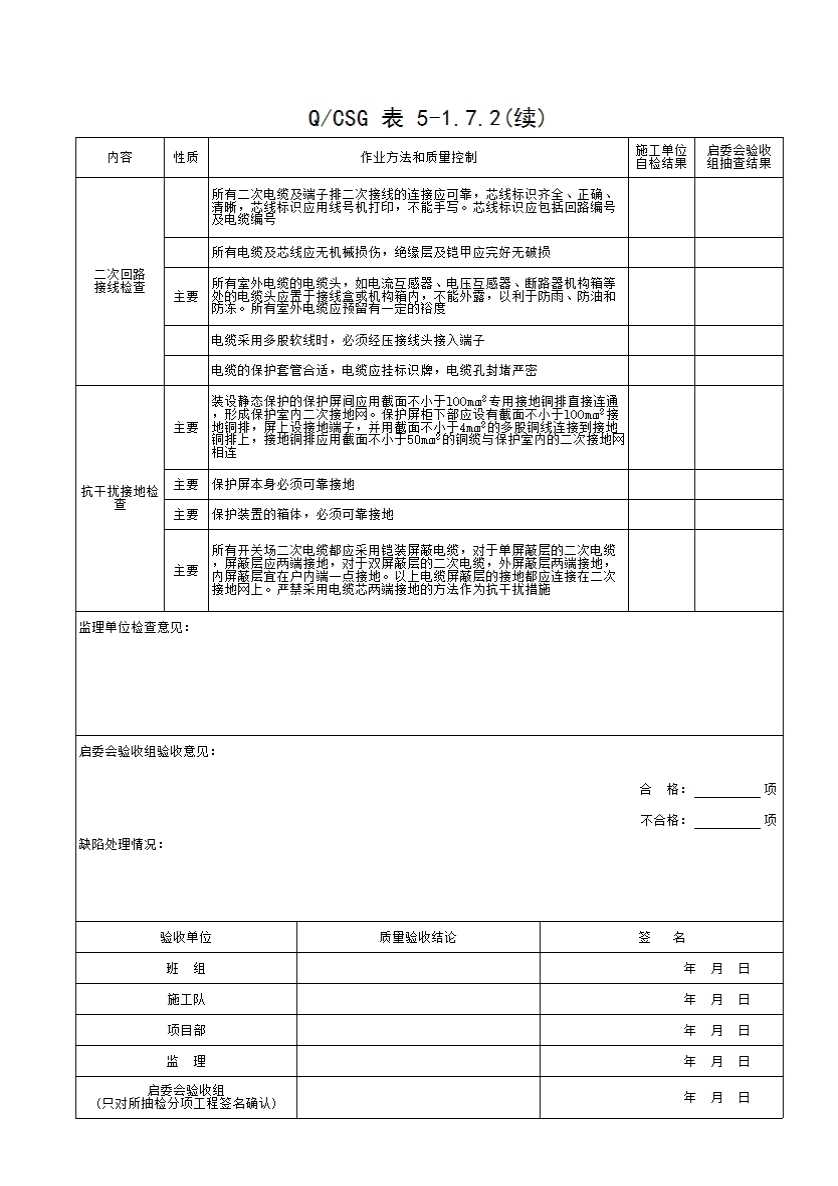 表格名称:QCSG 表 5-1.7.2 220kV_____母线保护 外观检查 分项工程质量验收记录表