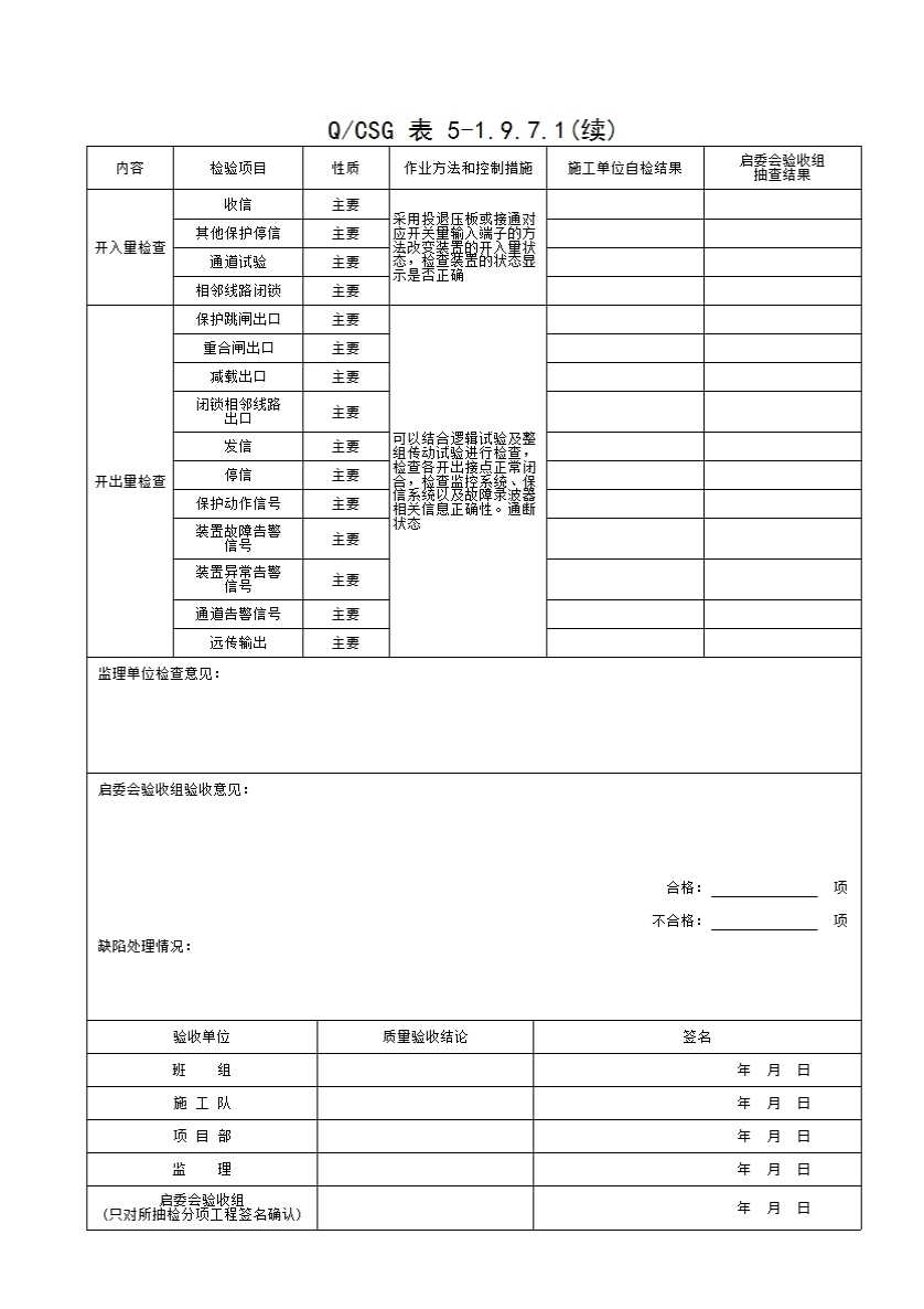 附录B 变电继电保护 分部、分项工程质量验收记录表