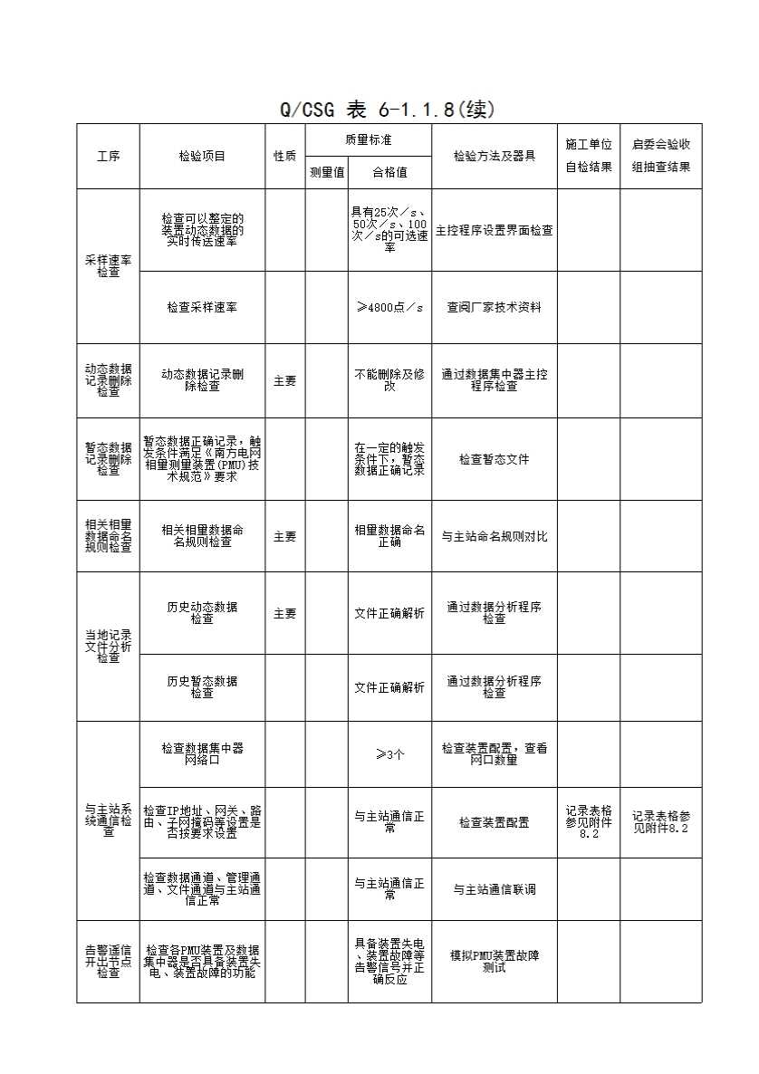 QCSG 表 6-1.1.8 相量测量装置(PMU) 分项工程质量验收记录表