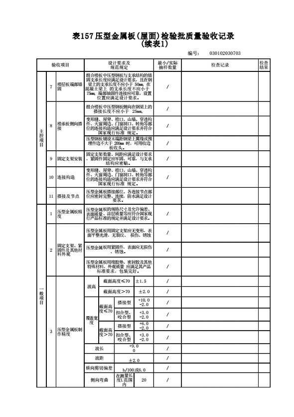 030102030703 压型金属板(楼层板)检验批质量验收记录