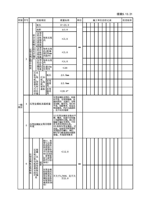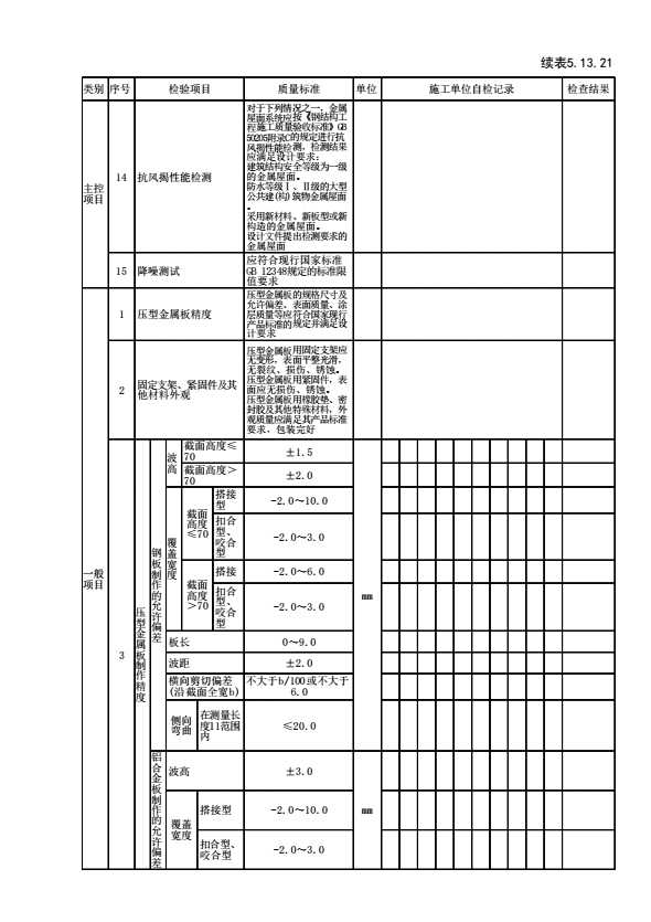 表格名称:表5.13.21 压型金属板(隔音降噪板)工程检验批质量验收记录