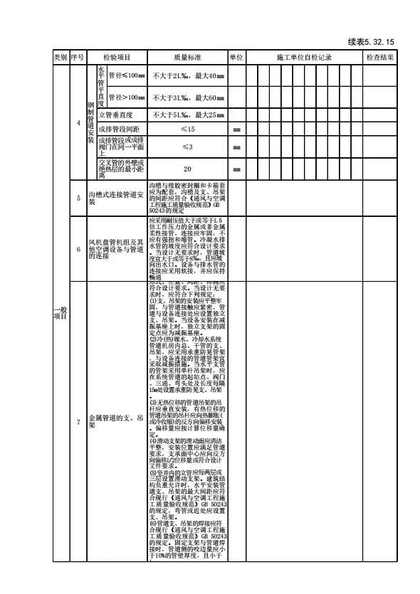 表格名称:表5.32.15 空调冷热(冷却)水系统安装(金属管道)检验批质量验收记录