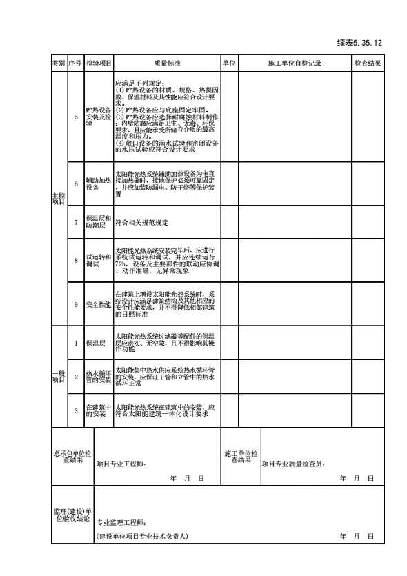 表格名称:表5.35.12 太阳能光热系统节能工程检验批质量验收记录
