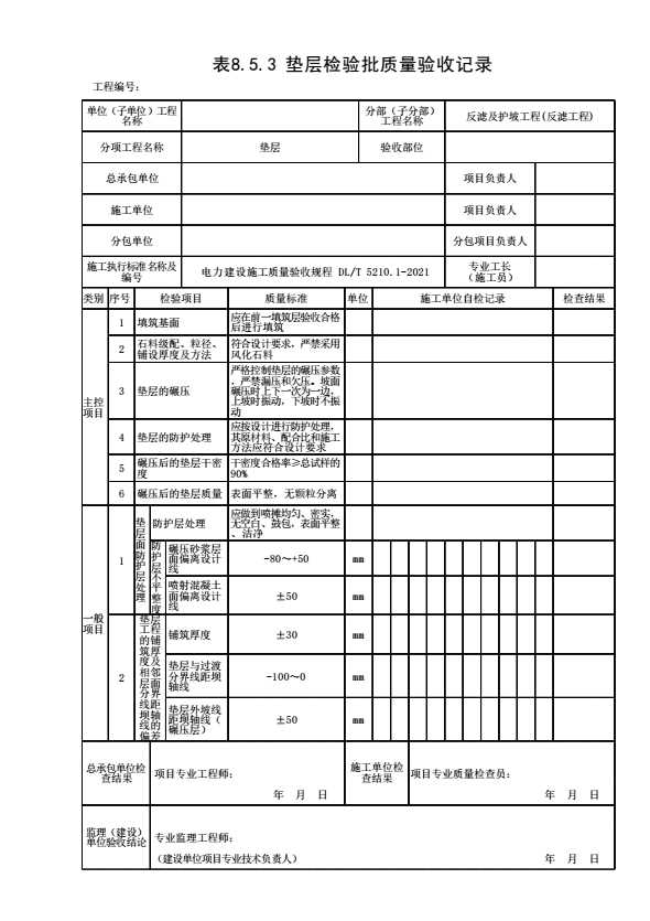 表格名称:表8.5.3垫层检验批质量验收记录