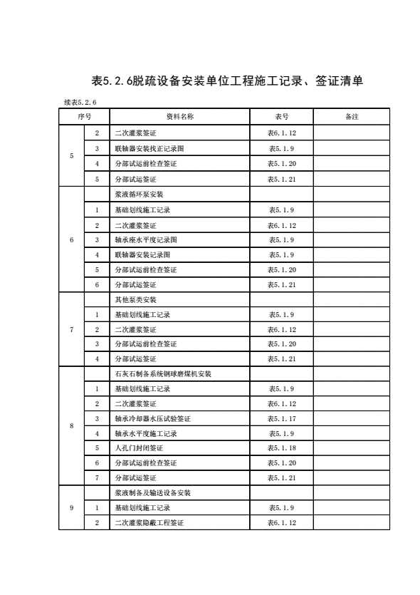 表5.2.6 脱疏设备安装单位工程施工记录、签证