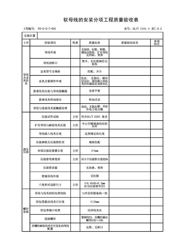 表格名称:表7.0.2 软母线安装分项工程质量验收表