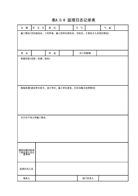 表A.0.8 监理日志记录表