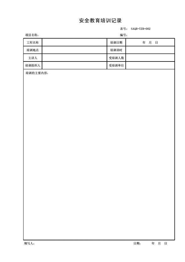 表格名称:SAQB-TZH-002 安全教育培训记录