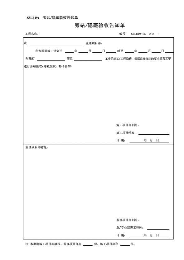 表格名称:SZLB19:旁站隐蔽验收告知单