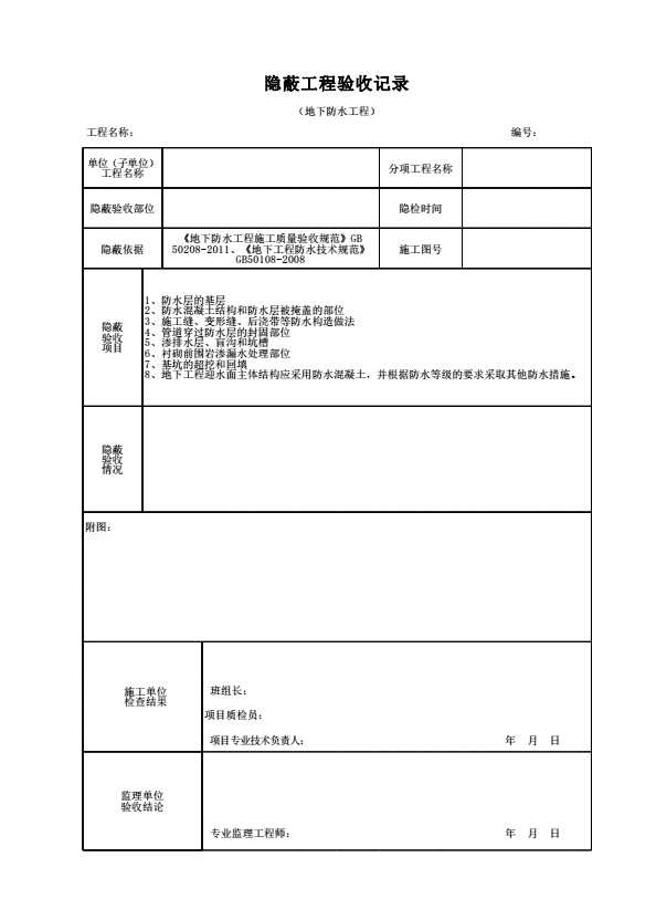 表格名称:隐蔽工程验收记录(地下防水工程)