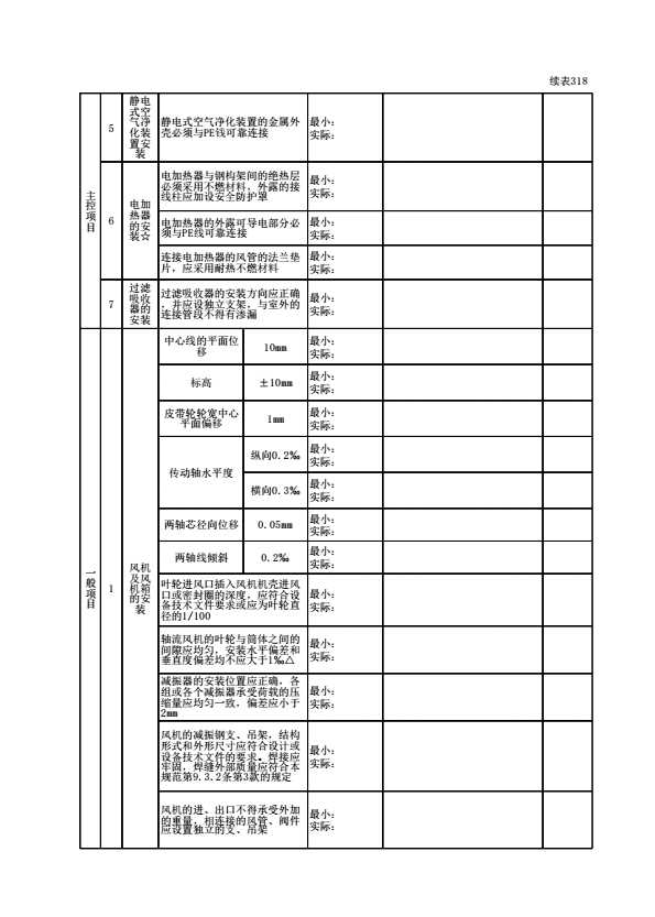 表格名称:030106040401 风机与空气处理设备安装检验批质量验收记录