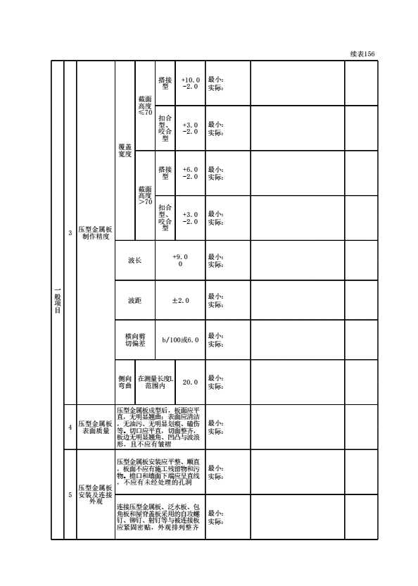 表格名称:140102050105 压型金属板(墙面)检验批质量验收记录