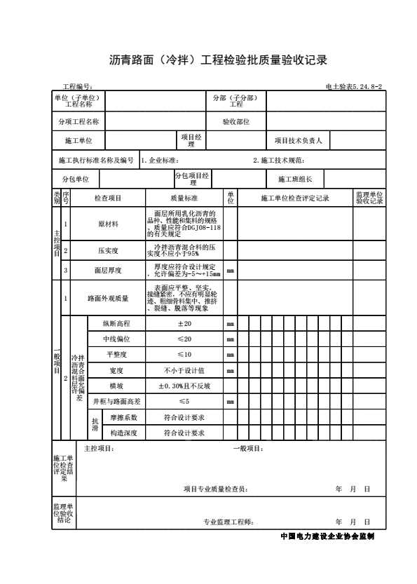 表格名称:电土验表5.24.8-2 沥青路面(冷拌)工程检验批质量验收记录