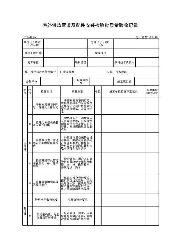 表格名称:电土验表5.25.18 室外供热管道及配件安装检验批质量验收记录
