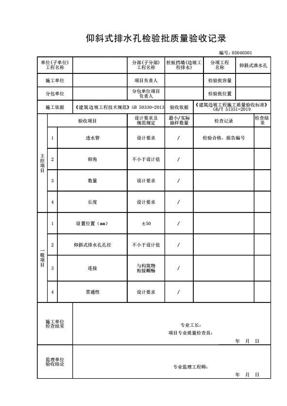 05040301 仰斜式排水孔检验批质量验收记录