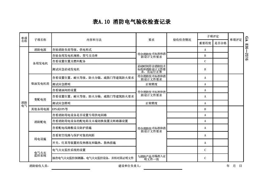 表格名称:表A.10 消防电气验收检查记录