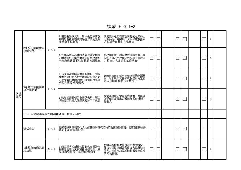 表E.0.1-2 系统部件功能和性能、系统控制功能调试、检测、验收记录