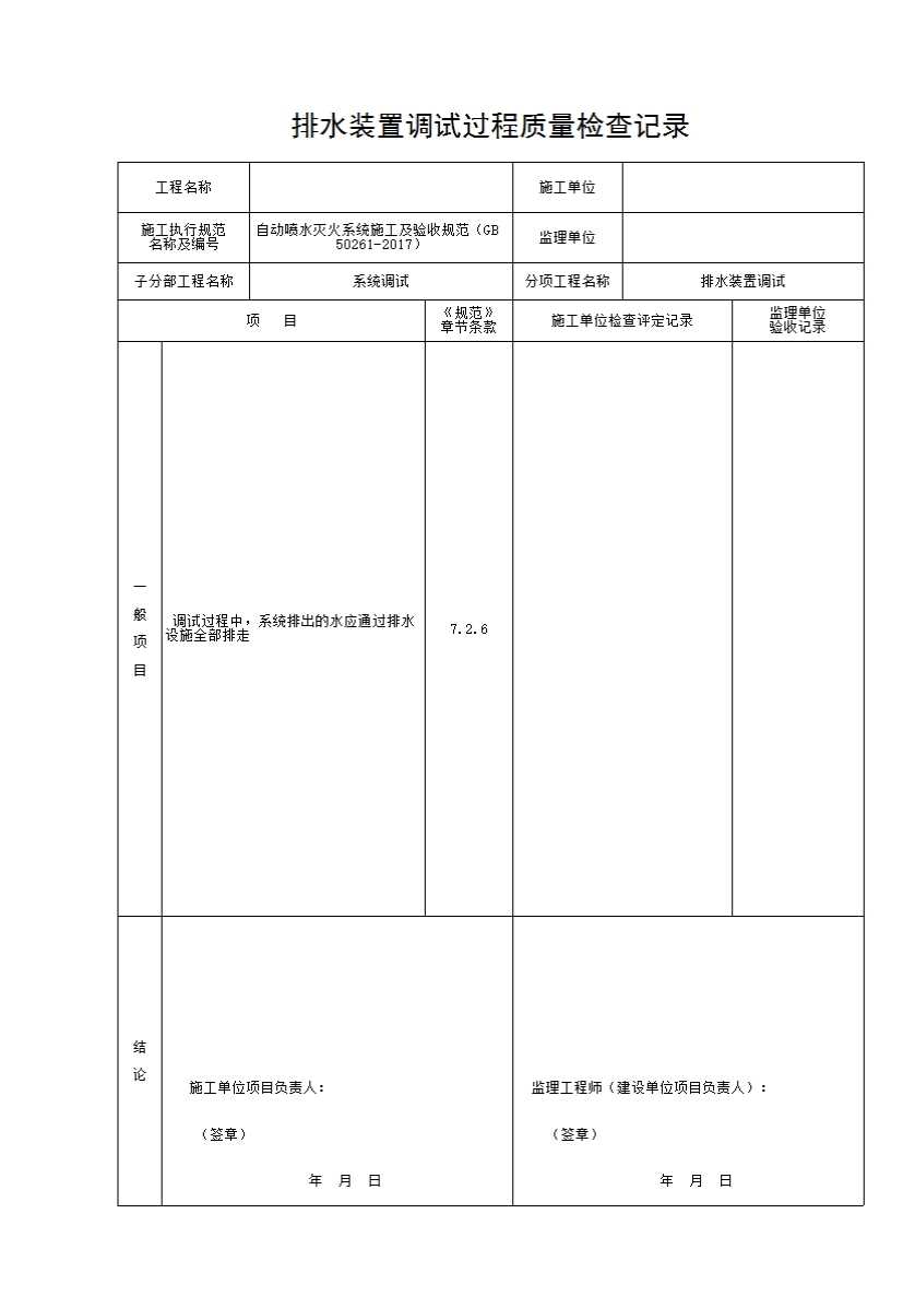 排水装置调试过程质量检查记录