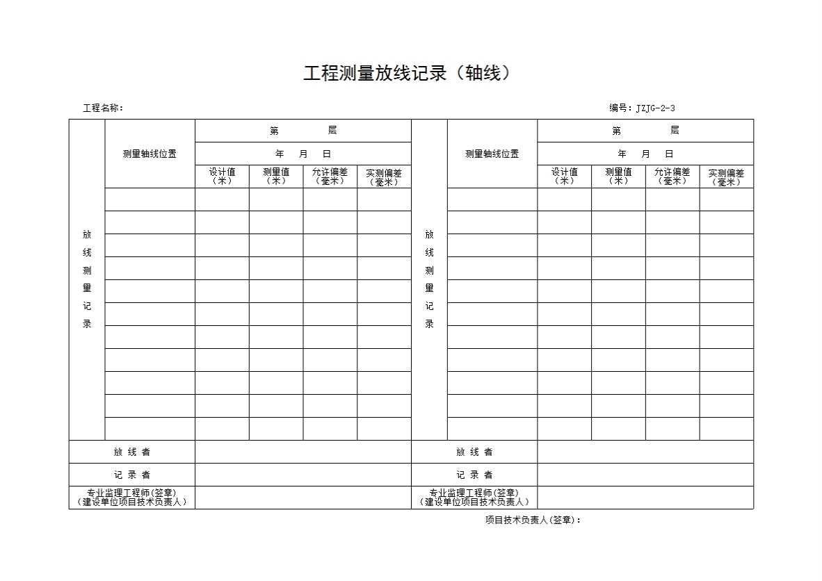 表格名称:JZJG-2-3 工程测量放线记录(轴线)