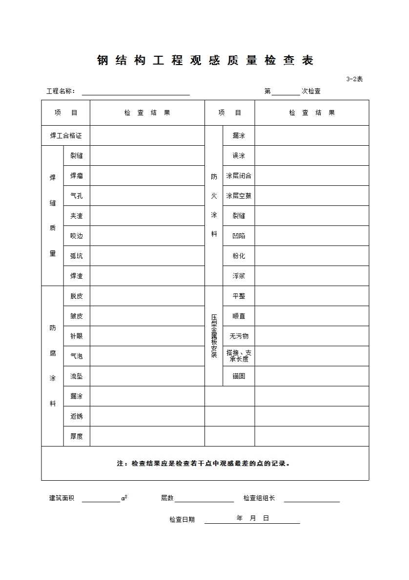 表格名称:3-2钢结构工程观感质量检查表