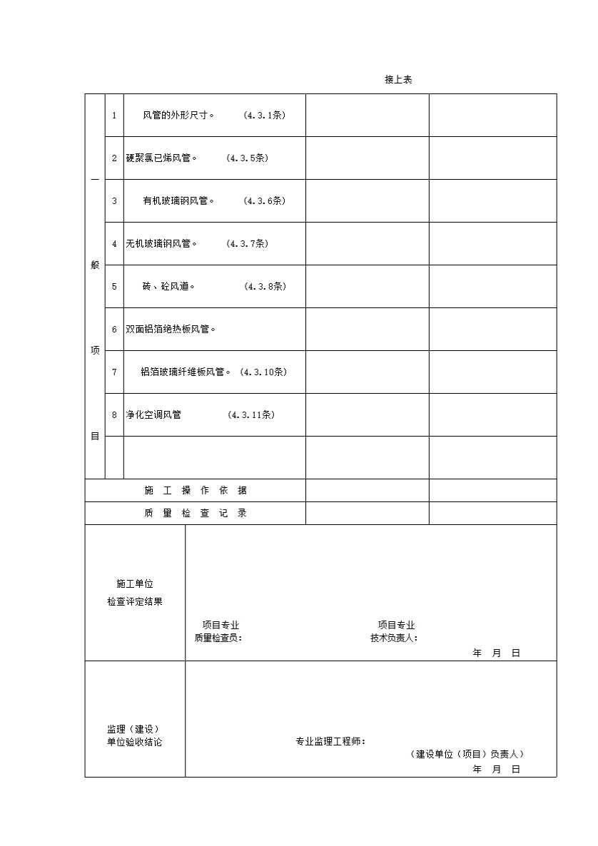 表格名称:风管与配件制作(非金属、复合材料风管)检验批质量验收记录080502