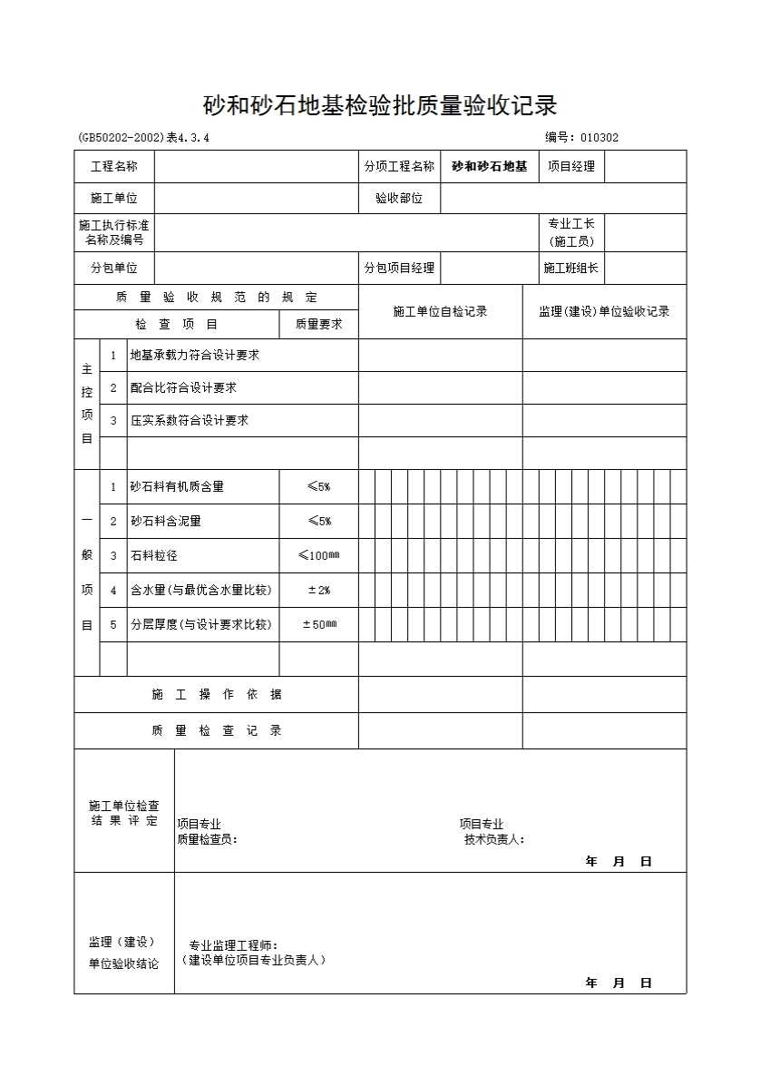 表格名称:砂和砂石地基检验批质量验收记录010302