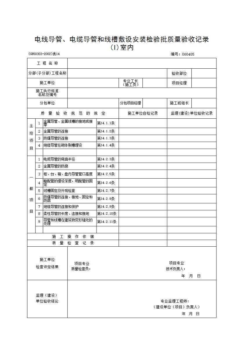 表格名称:电线导管、电缆导管和线槽敷设安装检验批质量验收记录(I)室内060405