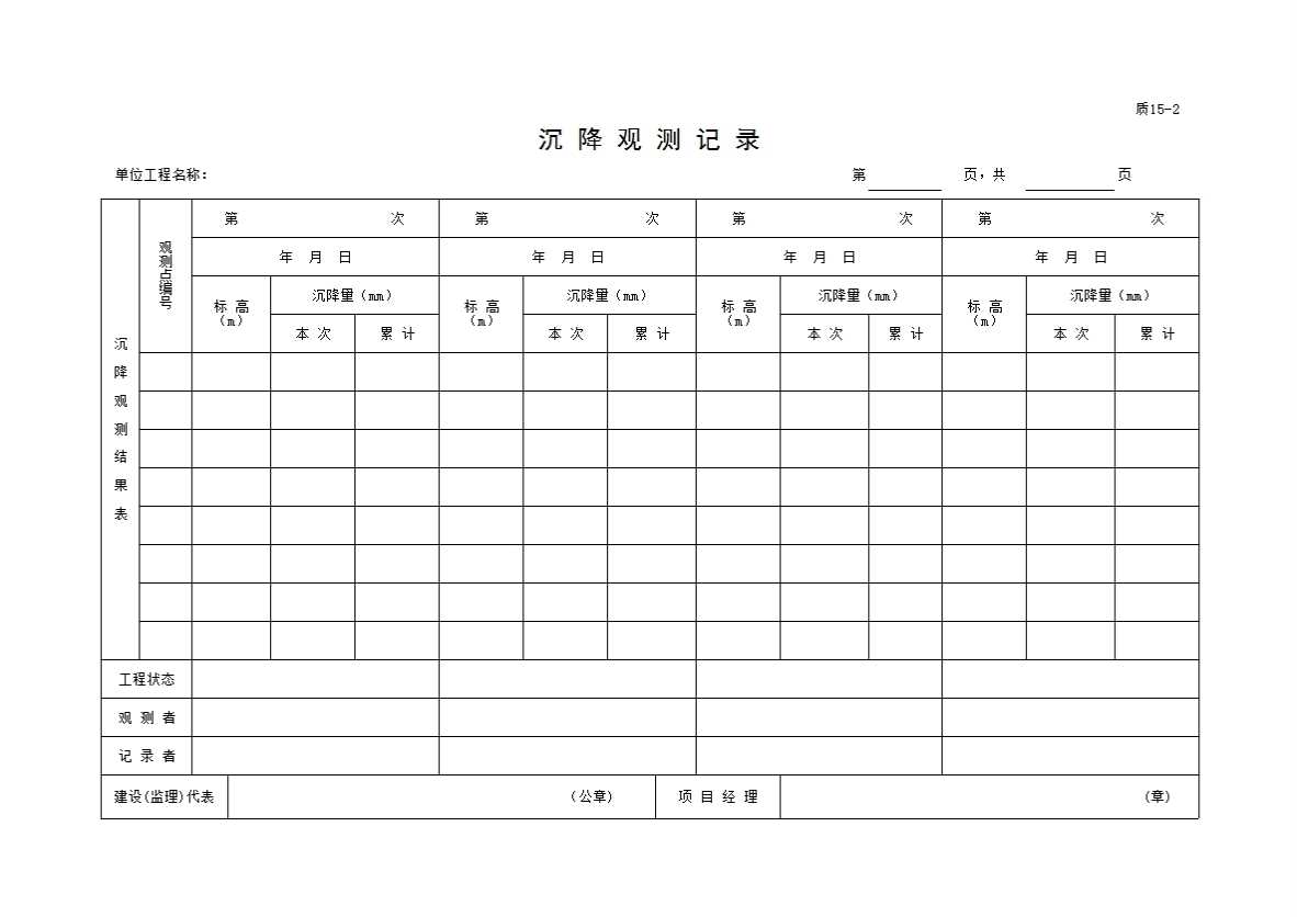 表格名称:19 沉降观测记录2