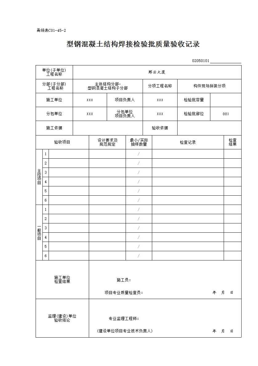 表格名称:02050101_型钢混凝土结构焊接检验批质量验收记录