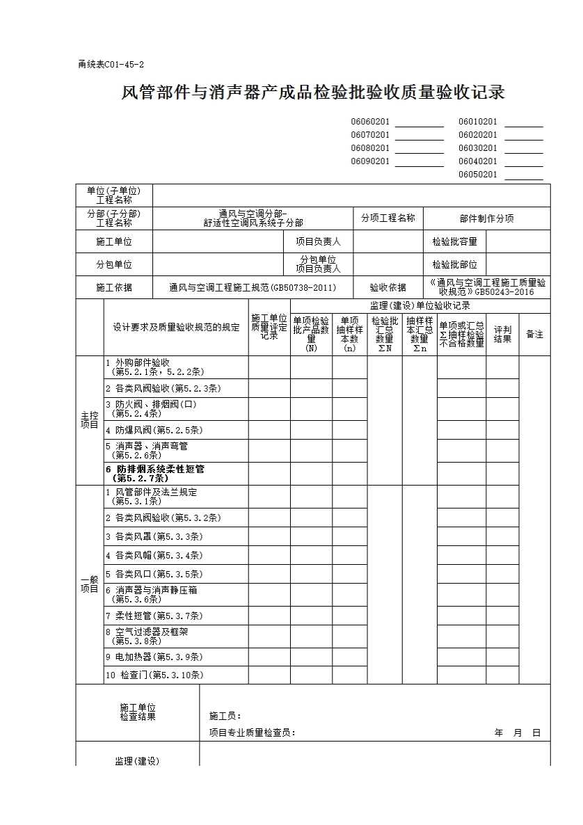 06050201_风管部件与消声器产成品检验批验收质量验收记录