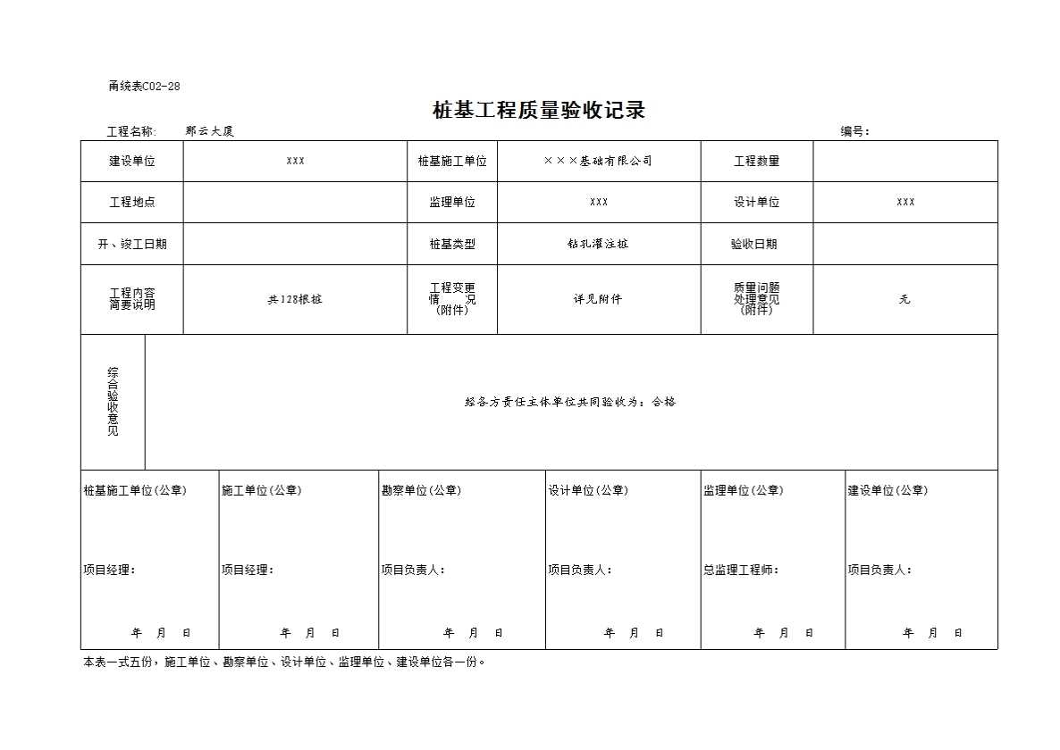 表格名称:C02-28 桩基工程质量验收记录