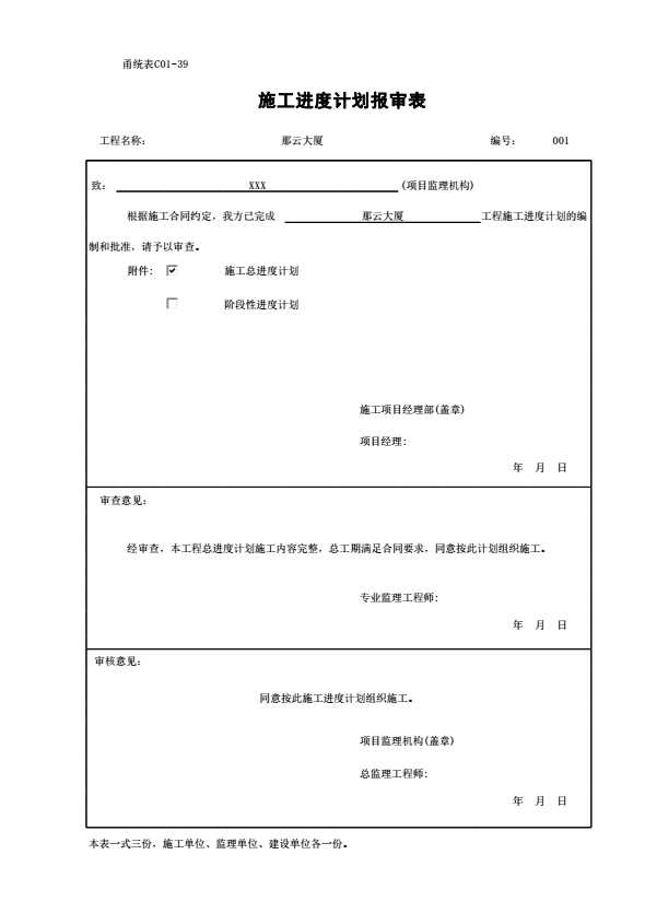 表格名称:C01-39 施工进度计划报审表