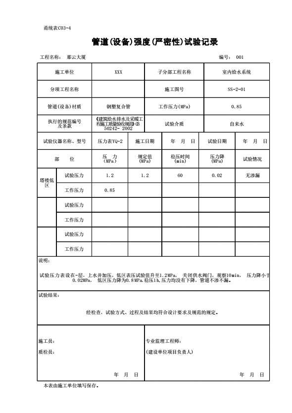 C03-4 管道(设备)强度(严密性)试验记录