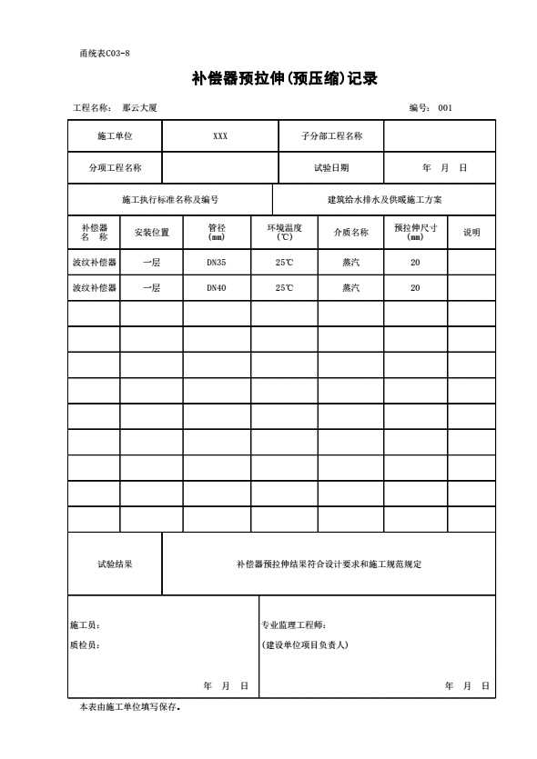 C03-8 补偿器预拉伸(预压缩)记录