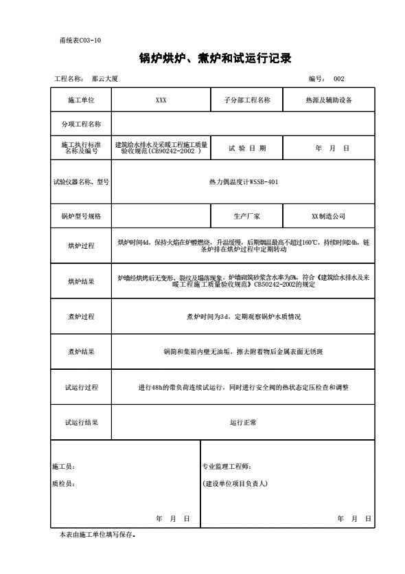 表格名称:C03-10 锅炉烘炉、煮炉和试运行记录