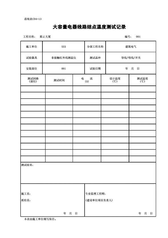 表格名称:C04-13 大容量电器线路结点温度测试记录