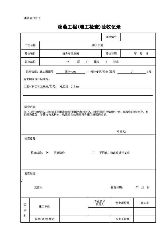C07-2 隐蔽工程(随工检查)验收记录