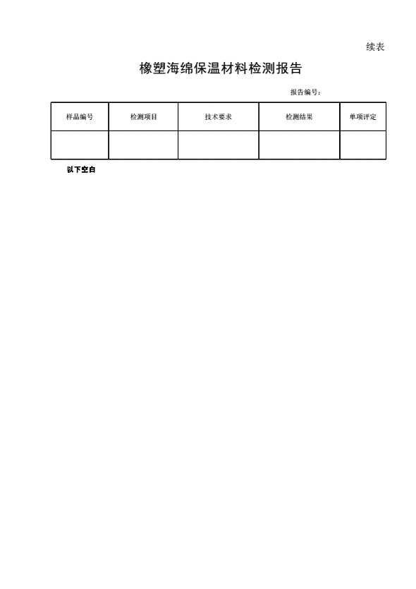 表格名称:C11-46 橡塑海绵保温材料检测报告