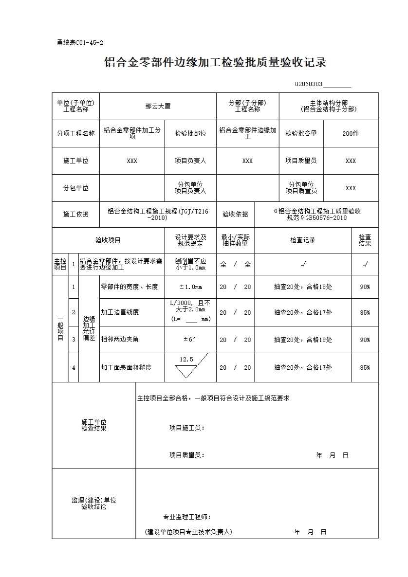 本表适用于铝合金结构制作及安装中铝合金零件及部件加工的质量验收。