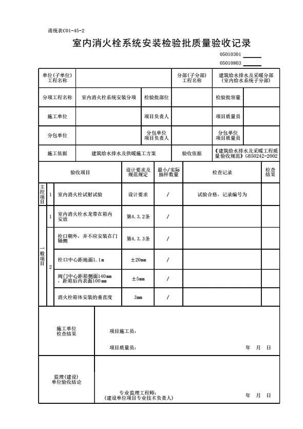 4 消火栓箱体安装的垂直度允许偏差为3mm。