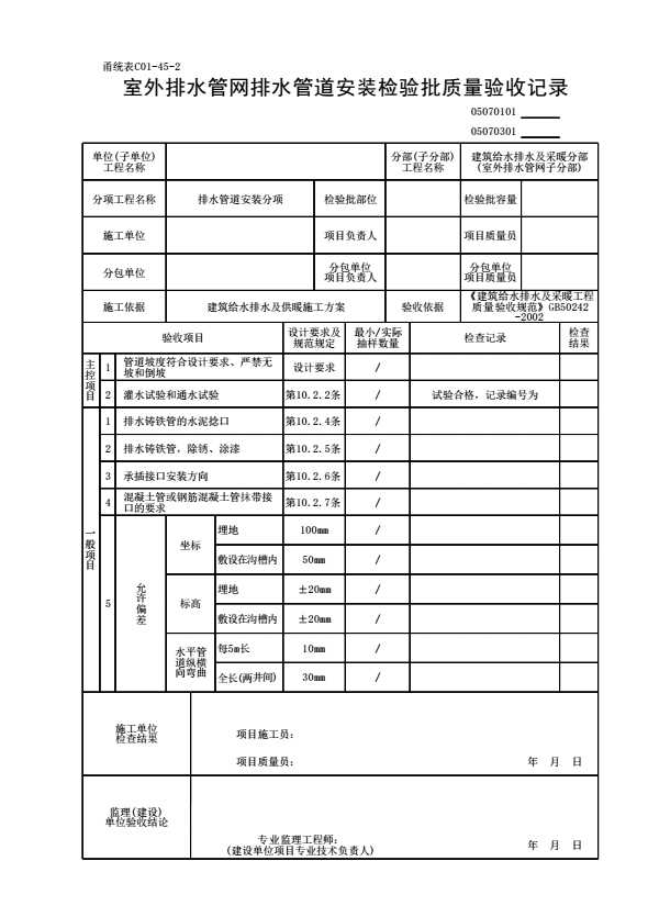 室外排水管网排水管道安装检验批质量验收记录