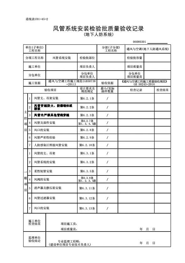 06080301_风管系统安装检验批质量验收记录(地下人防系统)