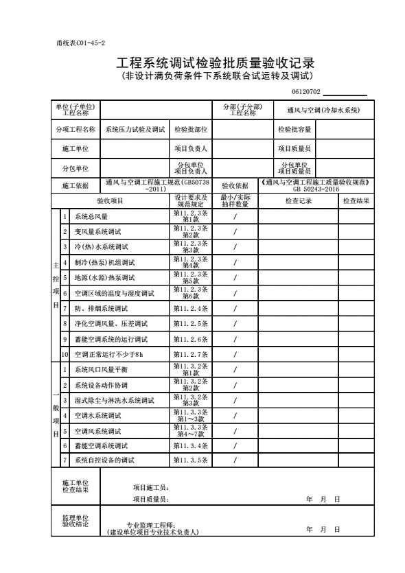 06120702_工程系统调试检验批质量验收记录(非设计满负荷条件下系统联合试运转及调试)