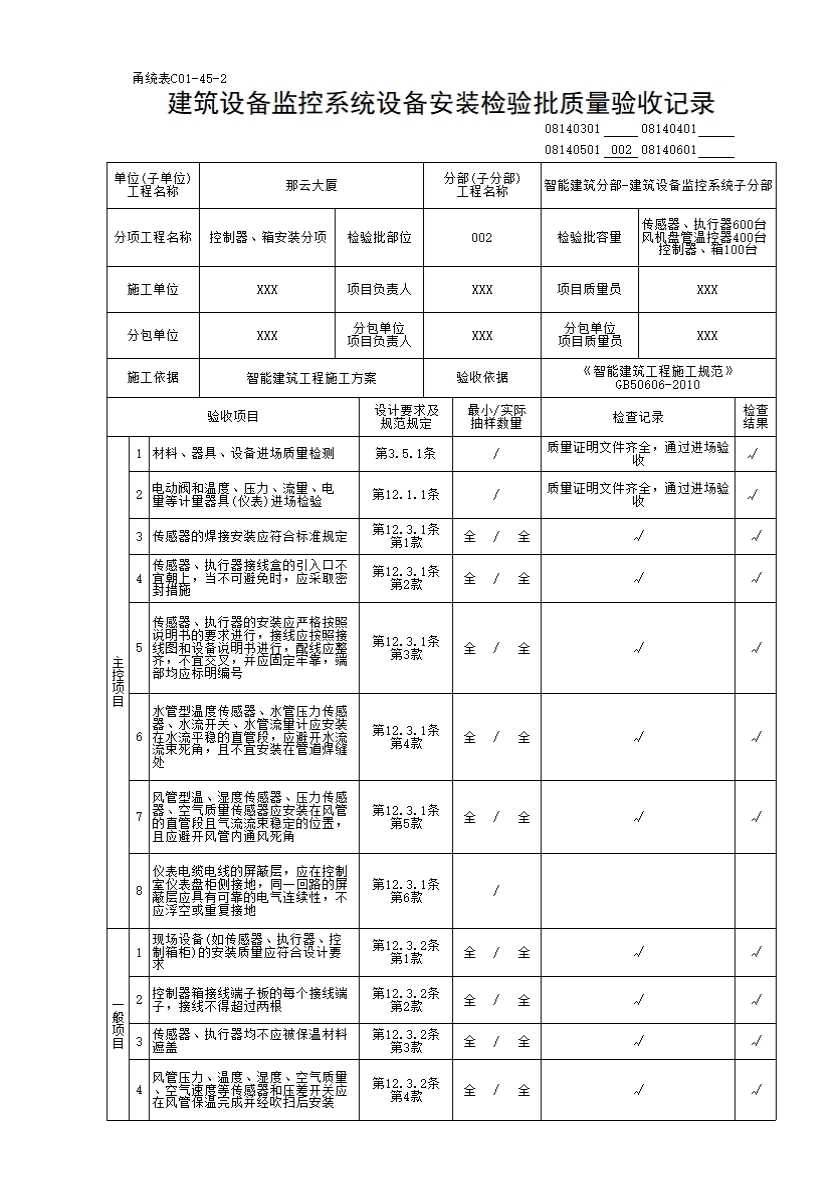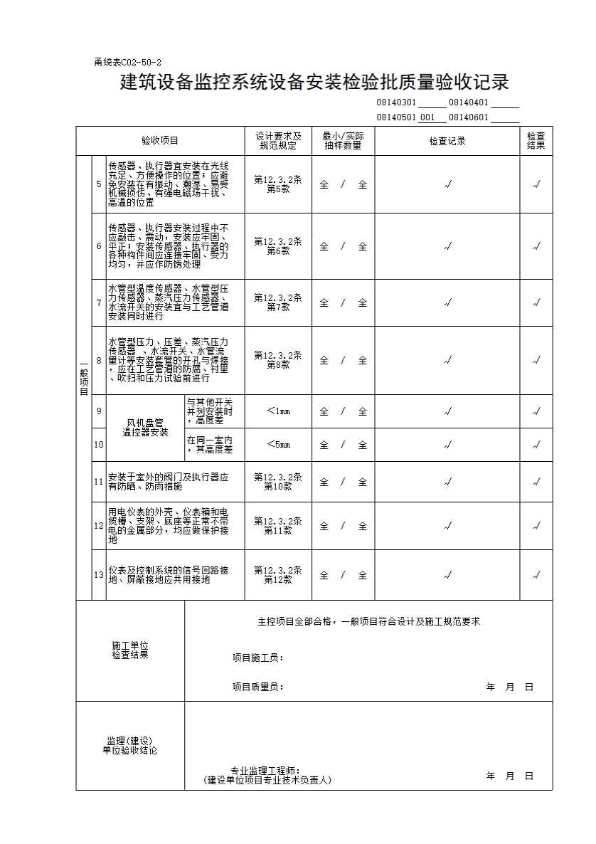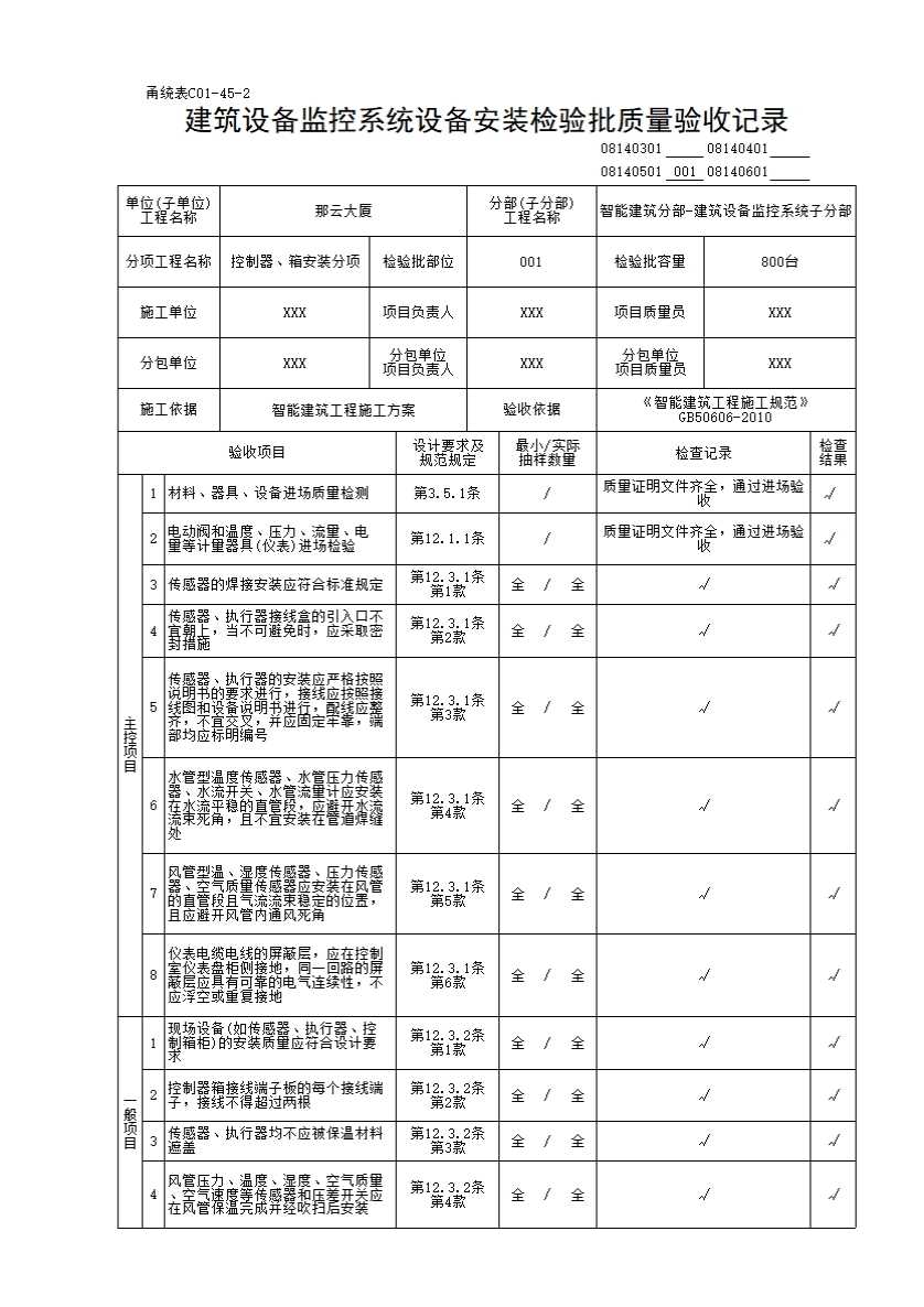 08140501_建筑设备监控系统设备安装检验批质量验收记录