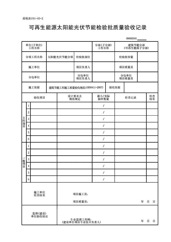 表格名称:09050301_可再生能源太阳能光伏节能检验批质量验收记录